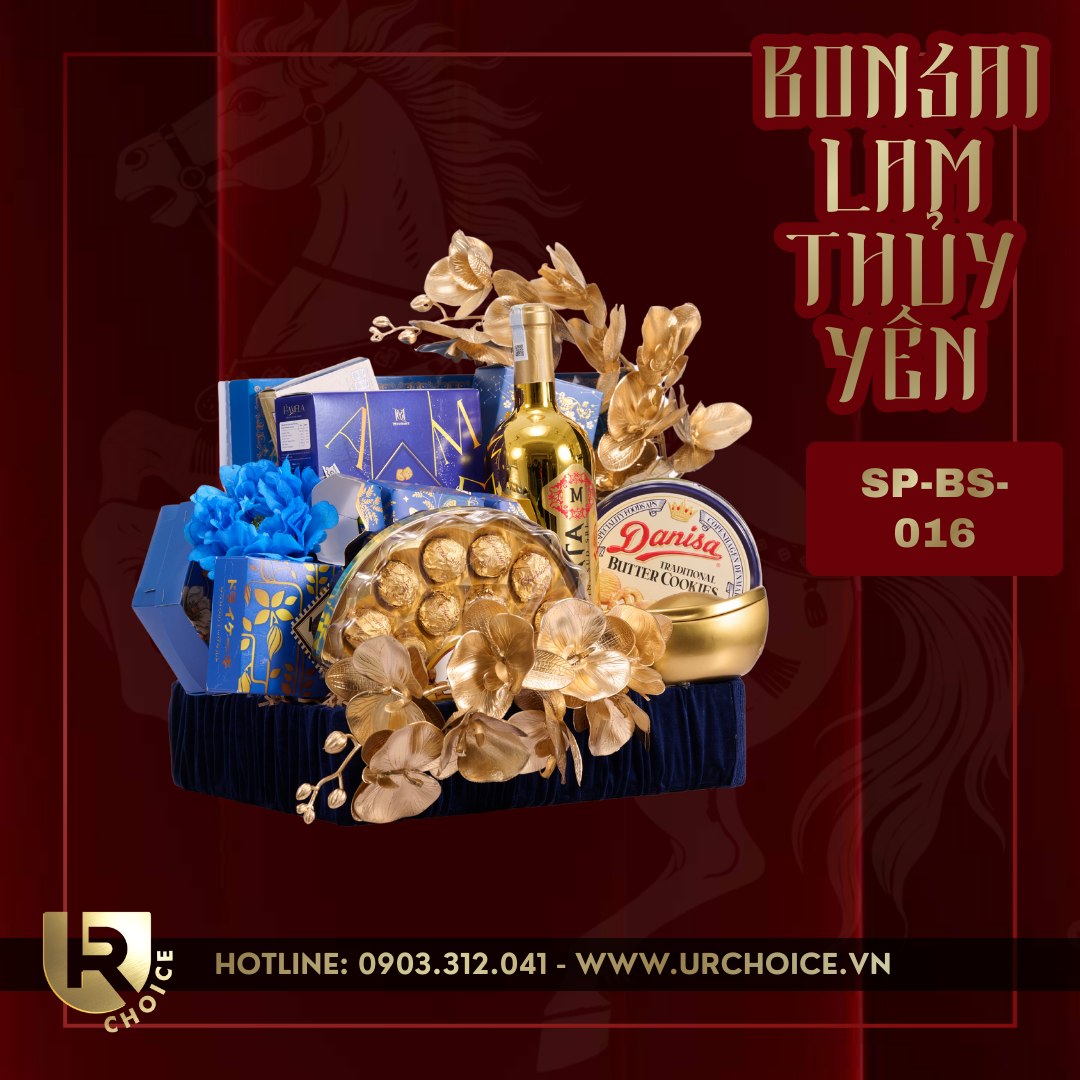 Là set quà Tết mang sắc xanh – vàng sang trọng, biểu trưng cho tài lộc, bình an và hưng thịnh. Thiết kế lấy cảm hứng từ sắc lam thanh nhã kết hợp cùng nghệ thuật trang trí bonsai hiện đại, tạo nên món quà vừa đẹp mắt vừa mang ý nghĩa may mắn trong dịp năm mới.